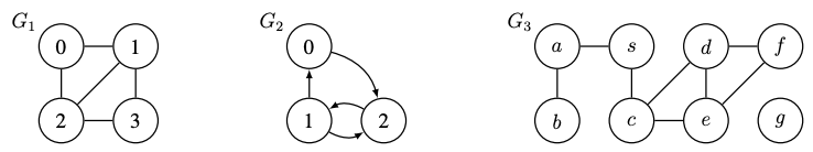 – edges are pairs of distinct vertices, e.g., u ≠ v for all (u, v) ∈ E