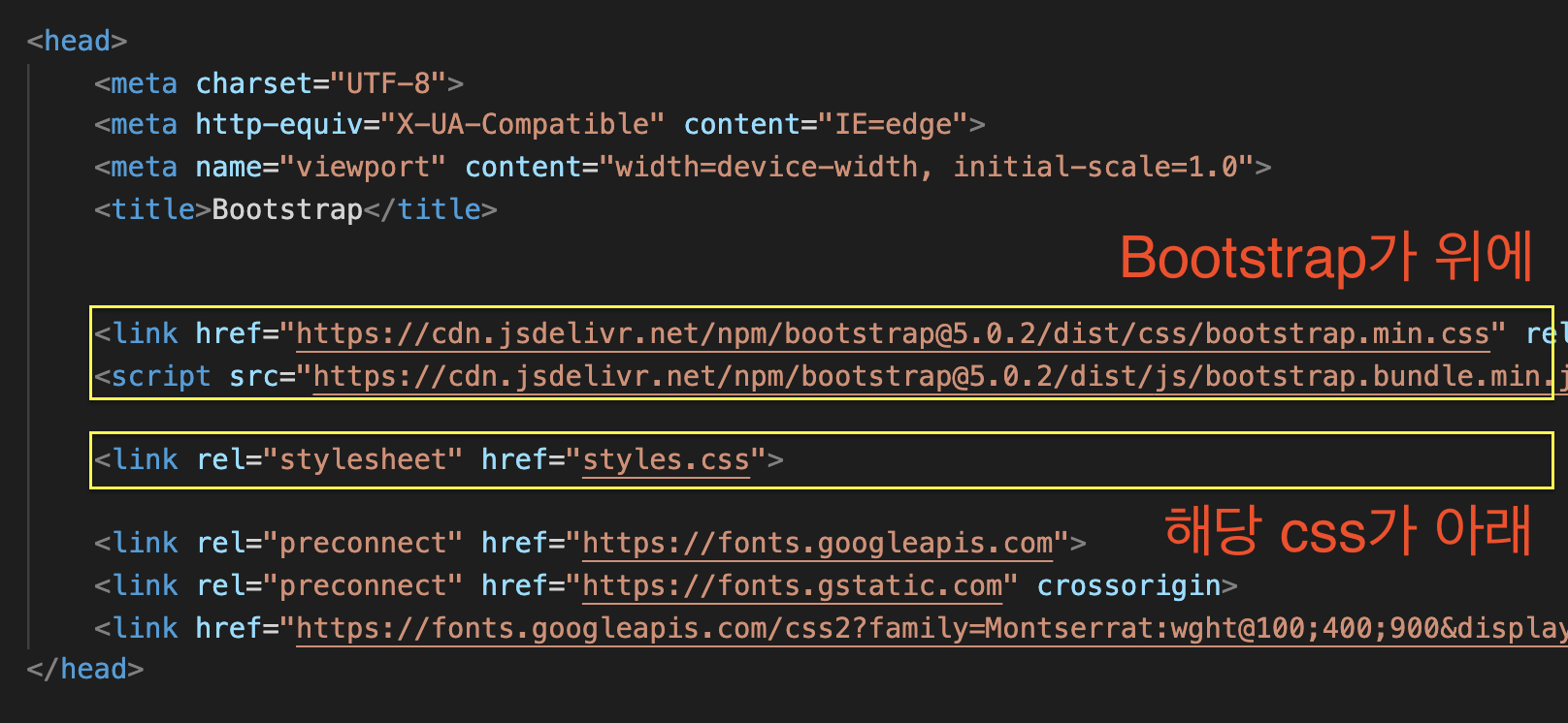 부트스트랩이나 다른 css 스타일시트가 여러 개일 경우