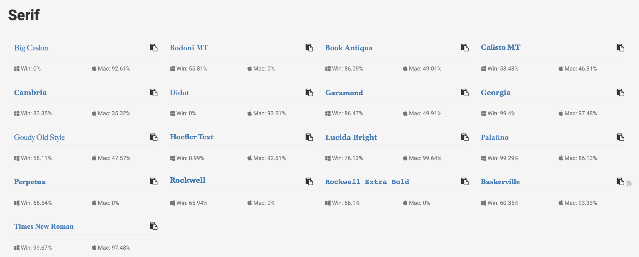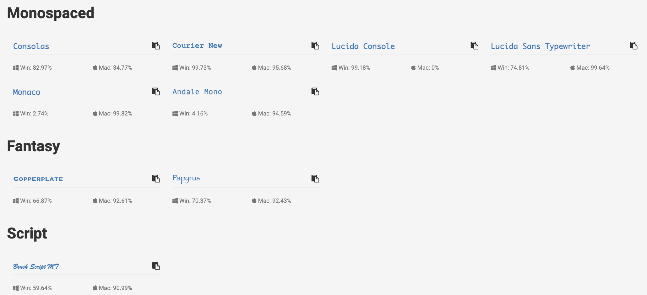 Arial인 경우 Win 99.84% Mac 98.74% 설치 되어있다.