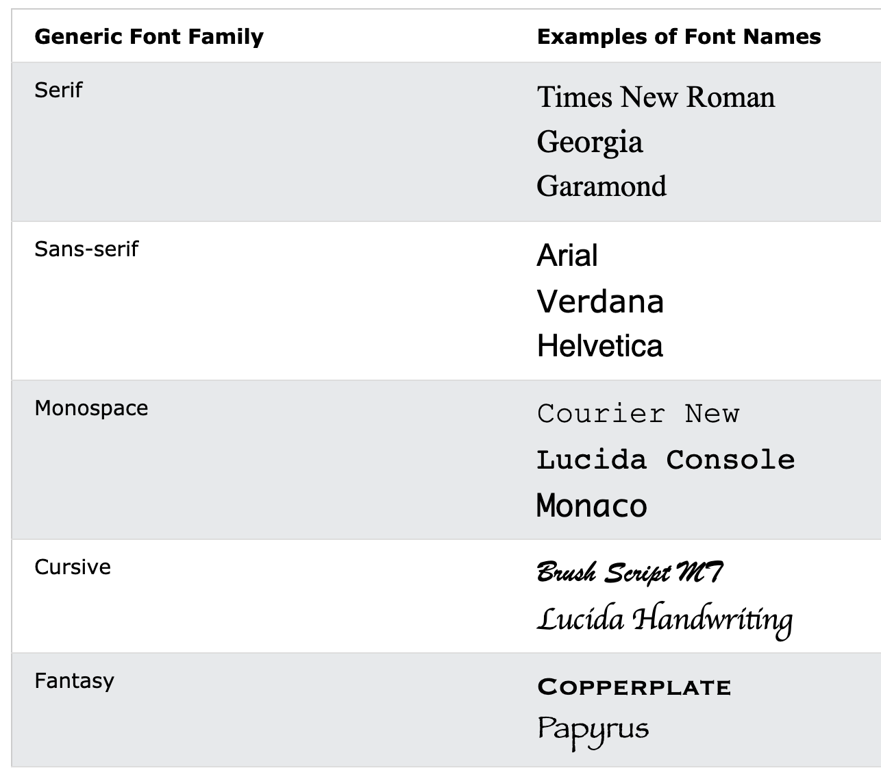 3. monospace: 각 알파벳마다 같은 가로 길이를 가지고 있다.