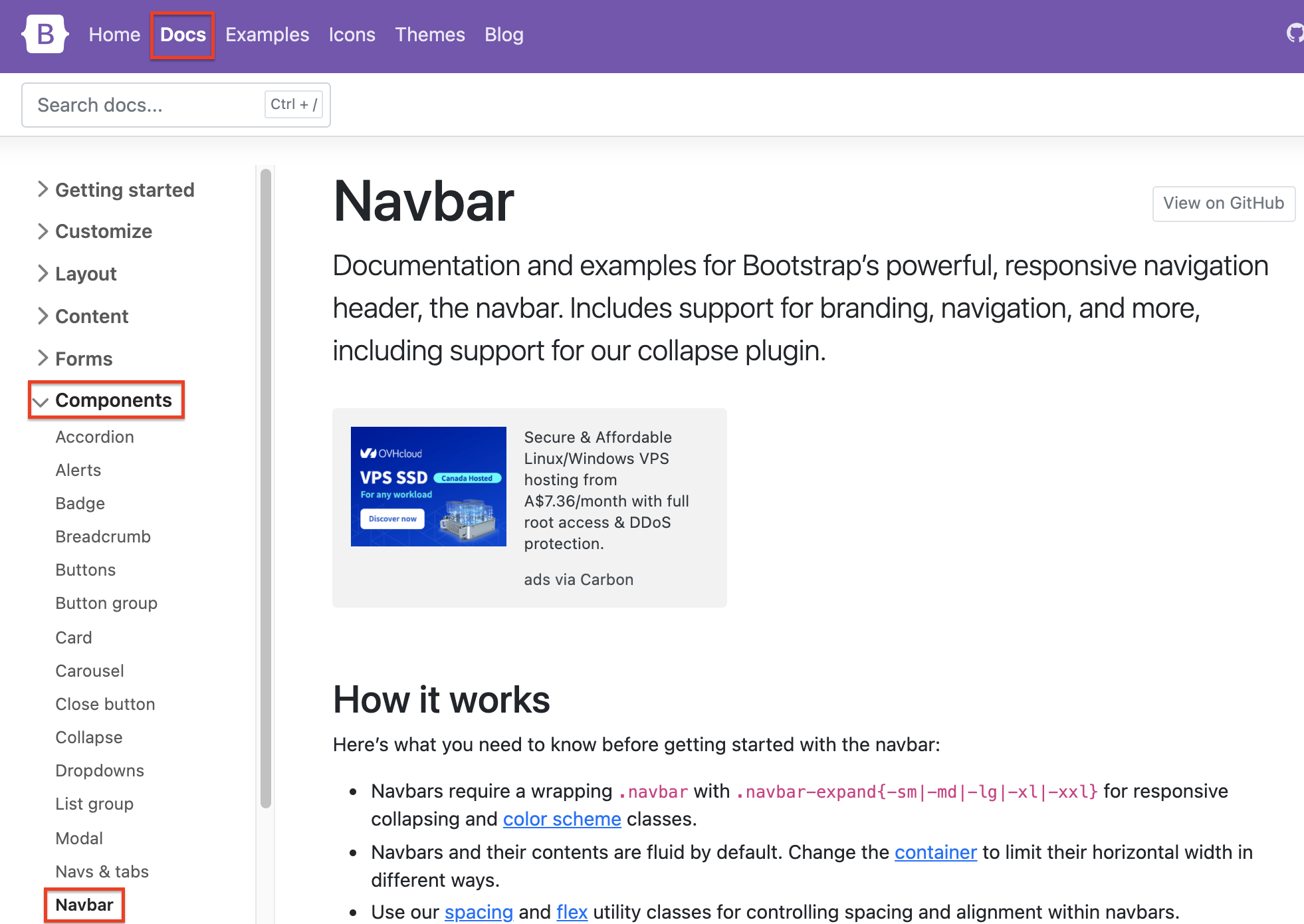 부트스트랩에서 docs -> components -> navbar 들어가기