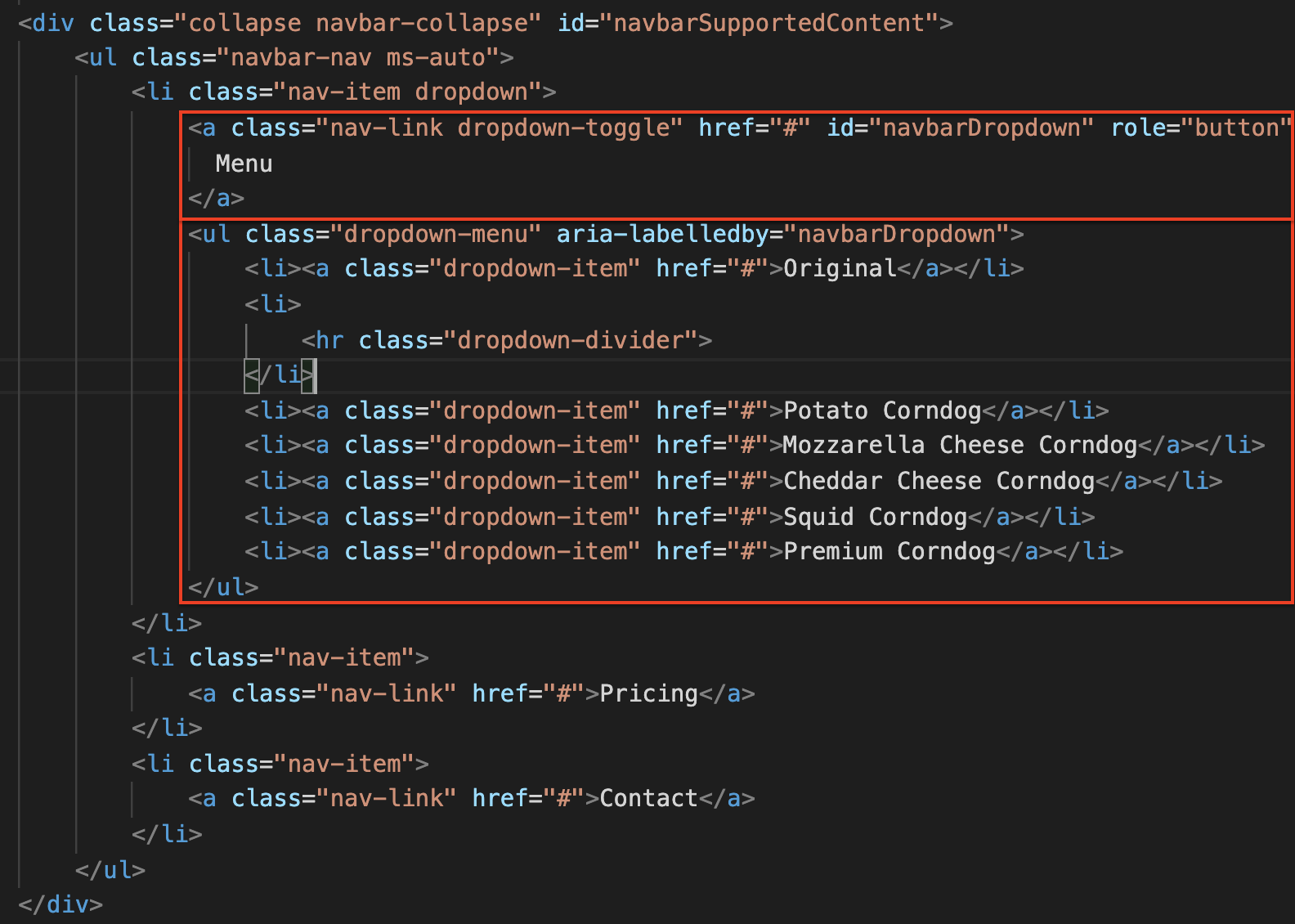 <ul class="dropdown-menu" aria-labelledby="navbarDropdown">