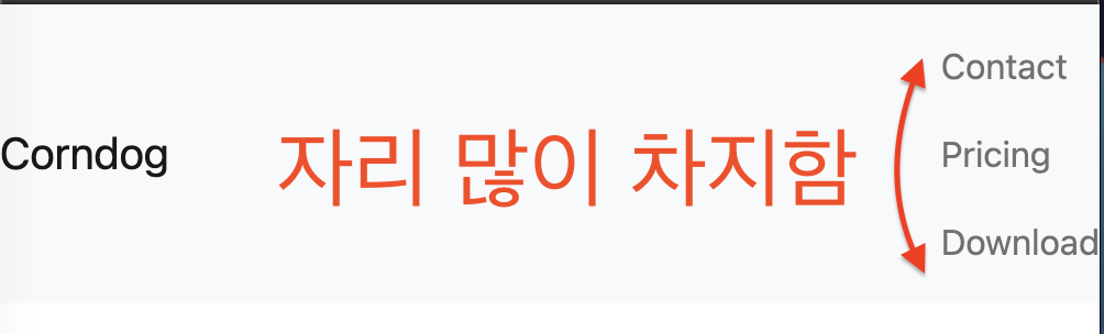 contact, pricing, Download 메뉴 3개를 오른쪽으로 밀기