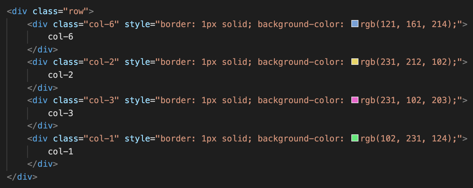 클래스를 col-6, col-4, col-3,, 등 col-숫자로 주었을 때