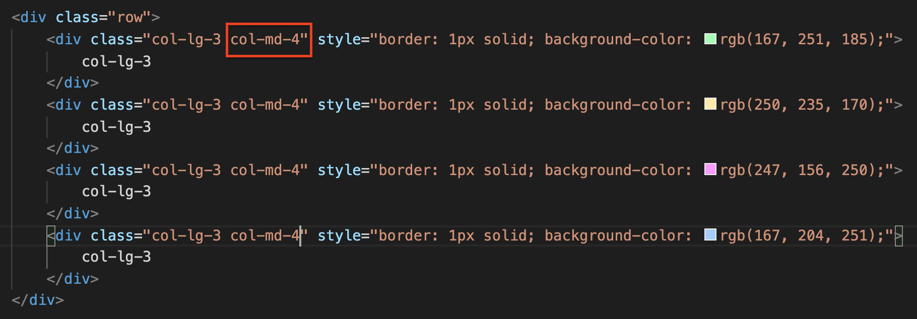 md 화면 사이즈일 때 각 4씩 배정해서 보이게 한다. 4씩 배정하니 3개가 들어간다.