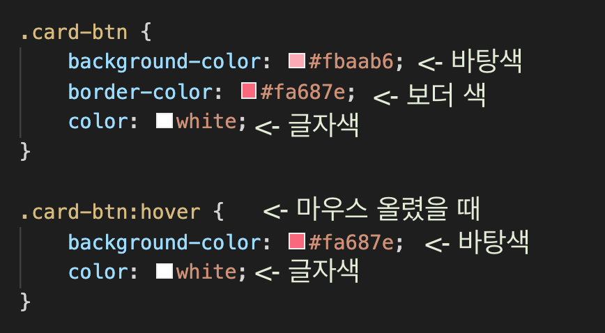 1. 새로운 클래스(card-btn)를 하나 만들고 css에서 따로 설정해 준다.
