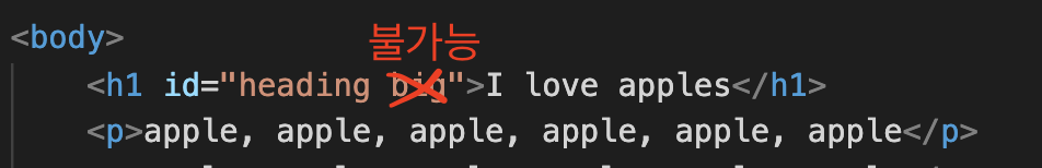 id = "heading"을 썼으니 또 같은 이름으로 id를 만들 수 없다.