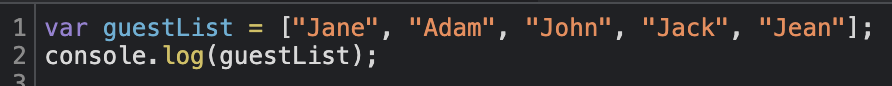 var guestList = ["Jane", "Adam", "John", "Jack", "Jean"];