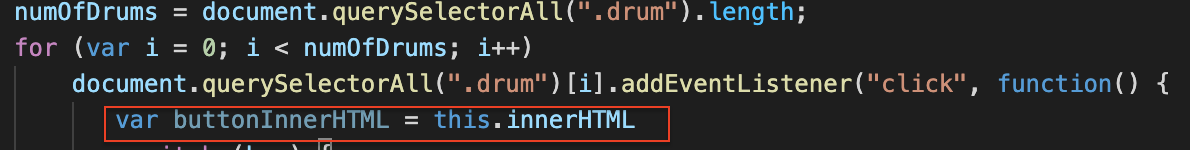 document.querySelectorAll(".drum")[i].addEventListener("click", function() {