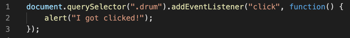 1. 클래스 drum에 해당하는 아이템 중에 querySelector로 첫번째 것만 클릭시 alert가 뜨게 해본다.