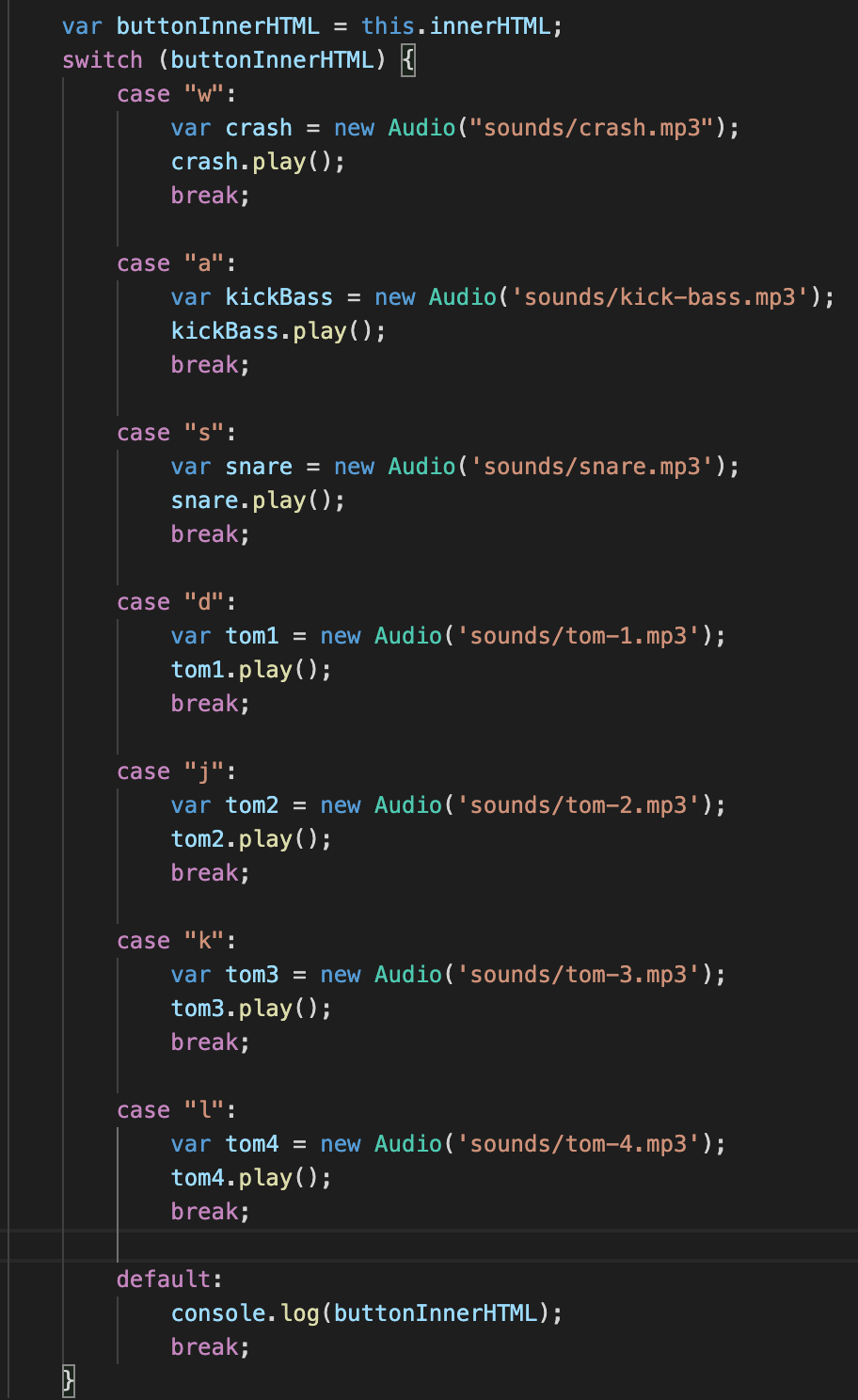 각 버튼에 다른 소리가 나게 하려면 switch statement가 필요하다.