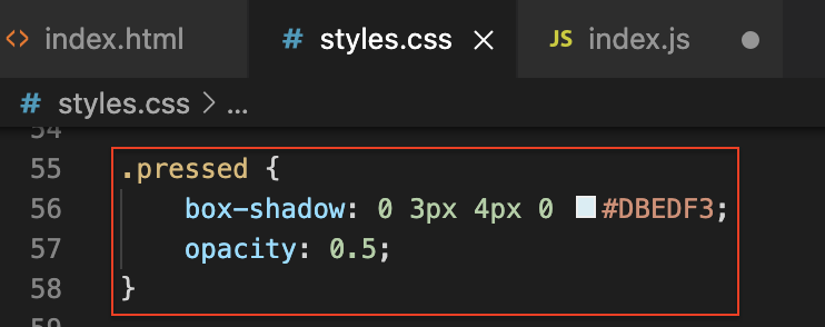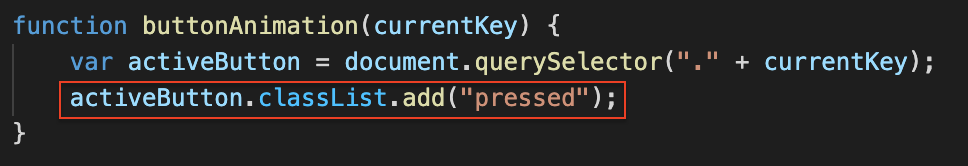 그래서 버튼이 눌러졌을 때 pressed라는 클래스를 추가하여 실행되도록 하였다.