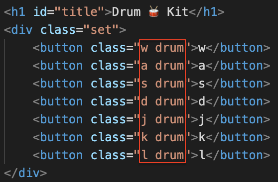 html 에서 보면 해당 드럼 버튼들이 2가지 종류의 클래스에 속해 있는 것을 볼 수 있다.