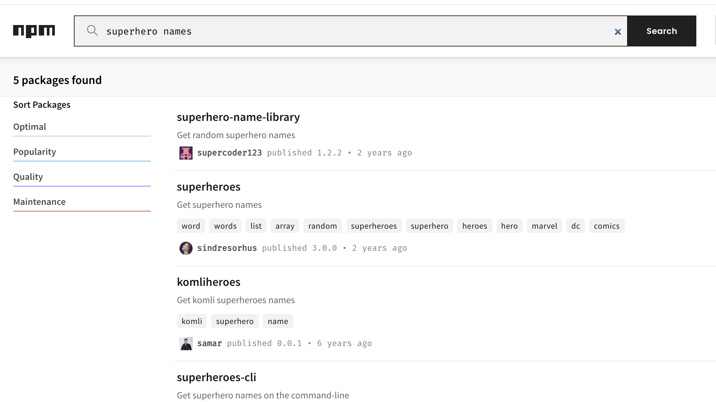 npm 홈페이지에 가면 많은 패키지가 있다.