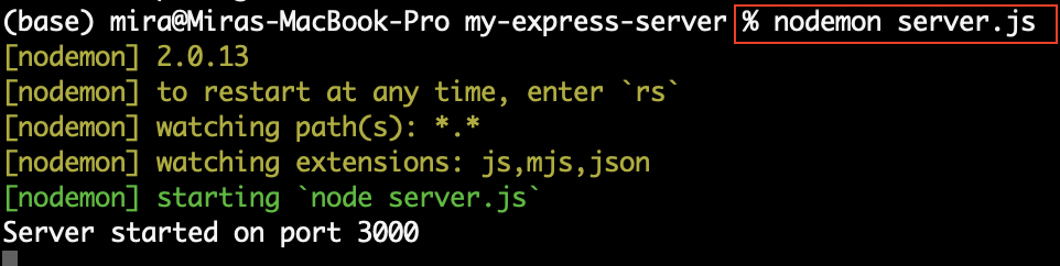 nodemon server.js
