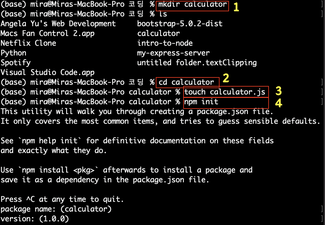 1 원하는 곳에 새 폴더 만든다 mkdir calculator