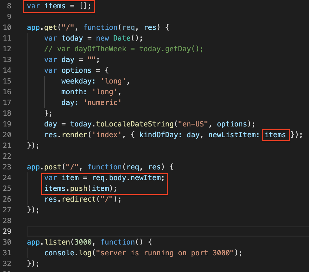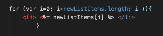 3-1 index.ejs에서 newListItems를 for loop으로 만든다.