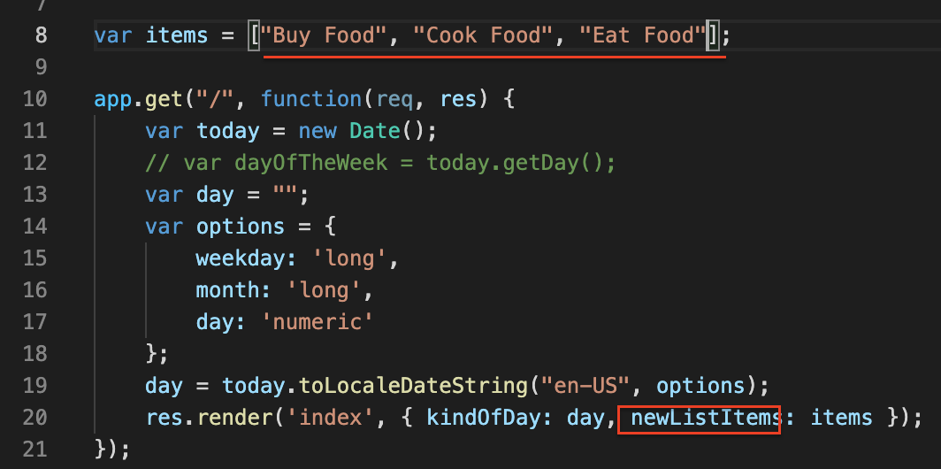 var items = ["Buy Food","Cook Food","Eat Food"];
