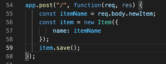 post()에 들어오는 데이터를 데이터 베이스에 저장해야 한다.