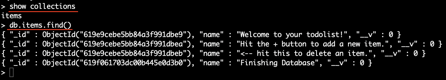 mongosh에 들어가서 데이터베이스에 저장되었나 확인하기