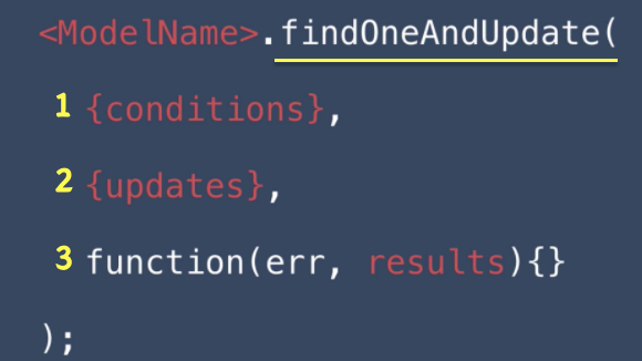 findOneAndUpdate()은 3개의 파라미터를 갖는다.