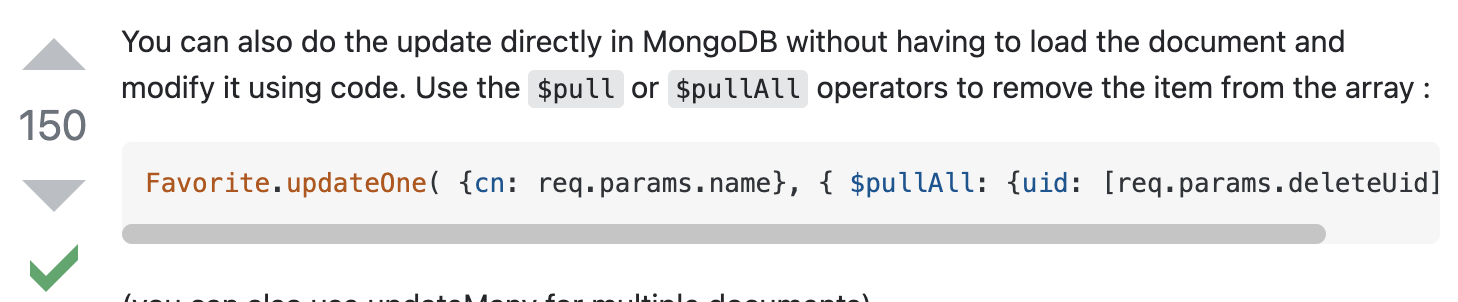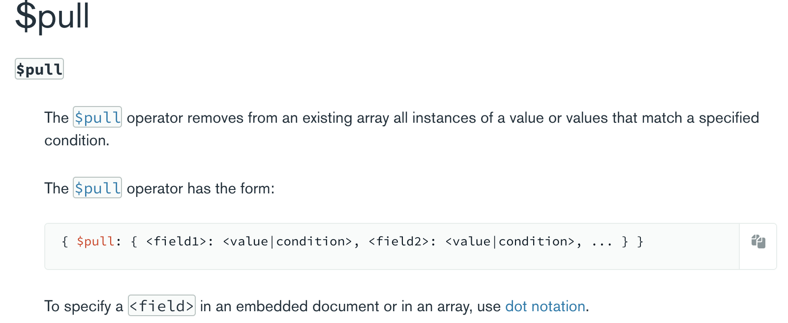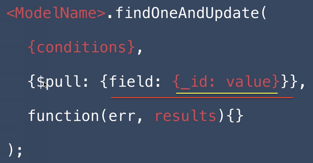 {$pull: {field: {query}}} 로 써줄 수 있다.