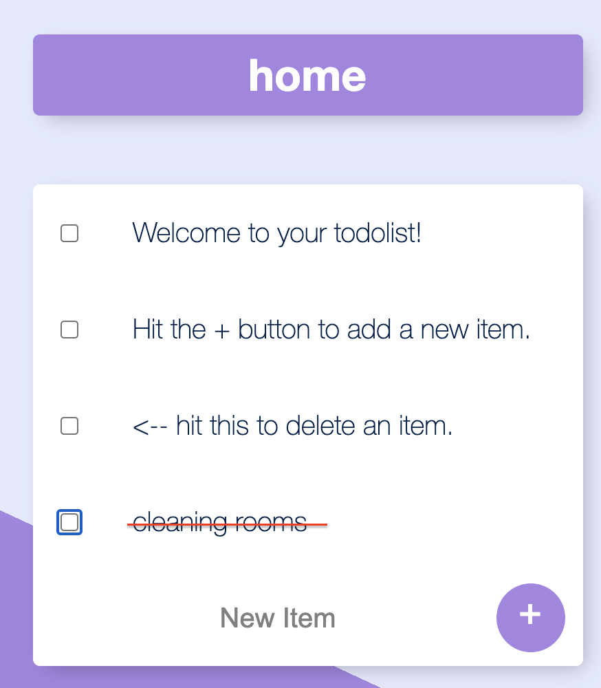 cleaning rooms를 체크하면 지워지고 home에도 그대로 머물러 있다.