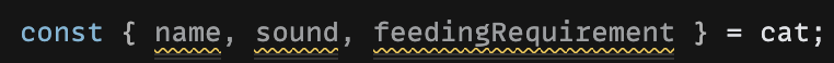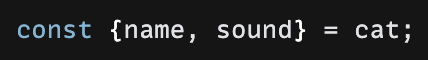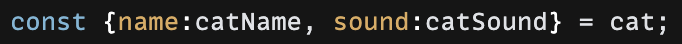 일단 cat 오브젝트를 다시 destructuring 하고,