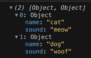 App.js에서 animals array를 불러오고 나서 콘솔에 뭐가 있나 본다.
