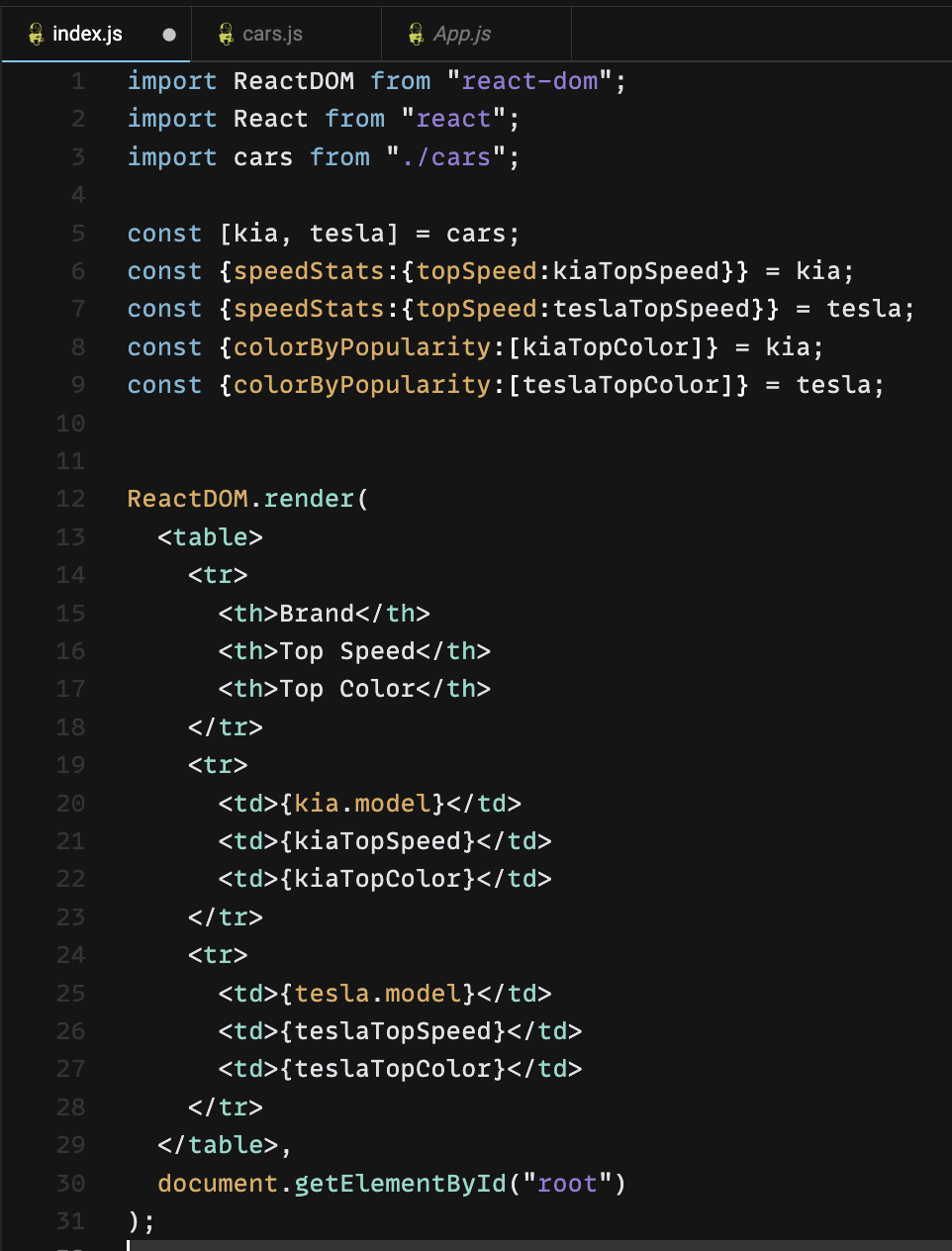 destructuring을 사용해서 아래와 같은 표를 만들기.