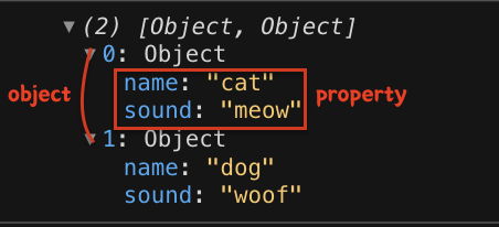 하지만 dog에도 같은 property 이름으로 name과 sound가 있다.