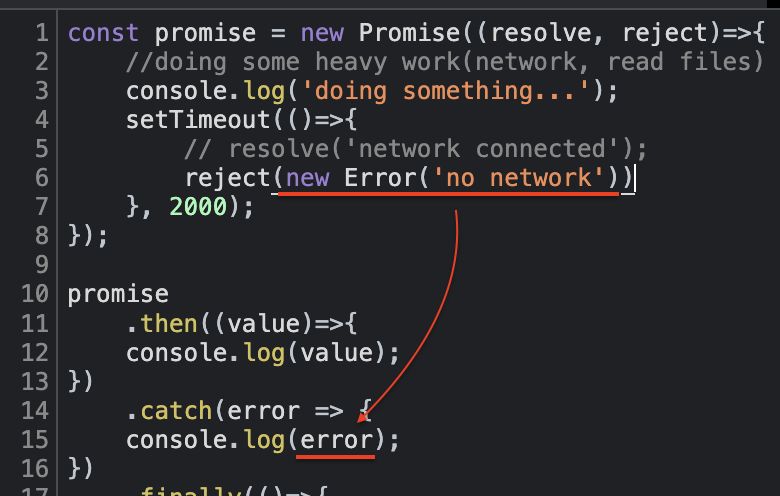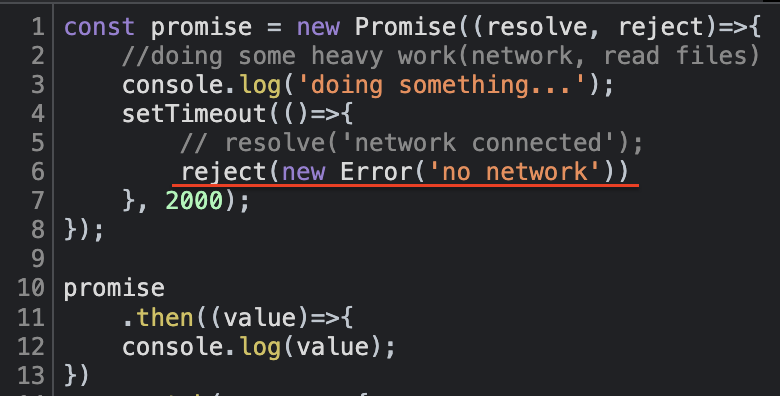 reject는 Error라는 오브젝트를 통해 값을 전달
