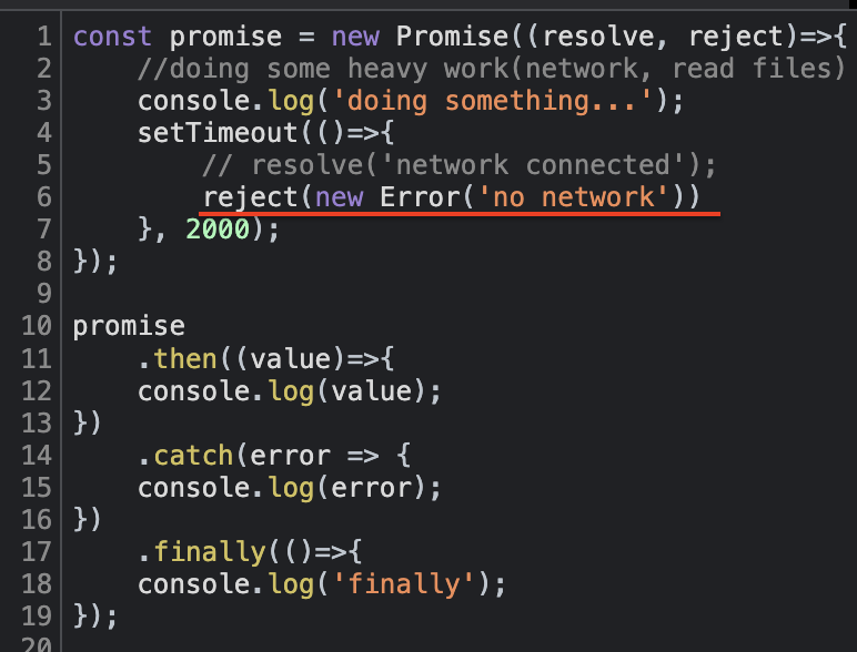 then을 이용해서 reject이나 Error를 잡지 못한다.