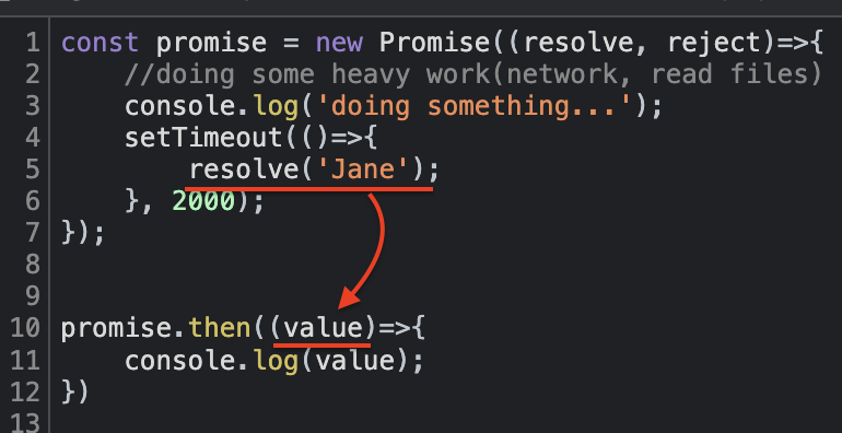 resolve에 있는 파라미터 값이 value로 전달되어 들어온다.