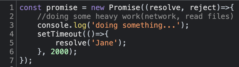 이 콜백 함수 안에 resolve, reject라는 2가지의 콜백함수를 받는다.
