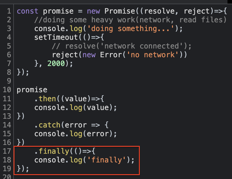 이 말은 프로미스 안에 네트워크 통신 코드를 작성했다면