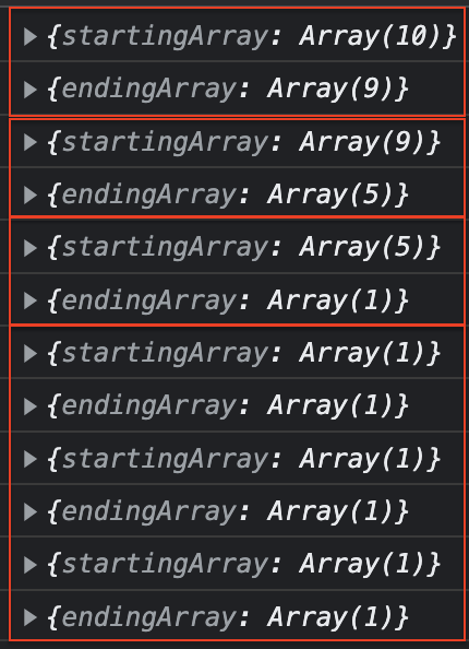 좀 더 이해를 돕기 위해 시작할 때 array와 ending array를 콘솔에 나오도록 해보자.