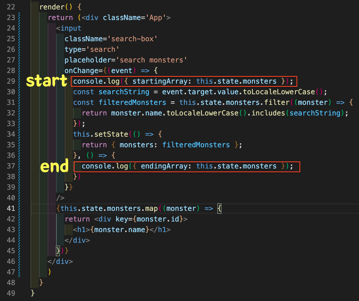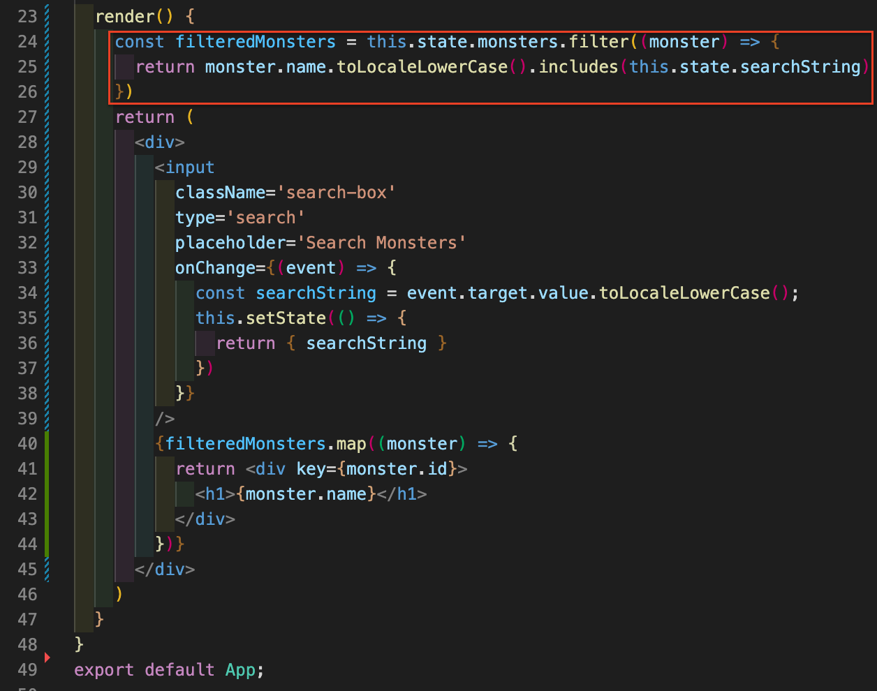 filteredMonsters array가 render() 안, return 밖에 위치하게 한다.