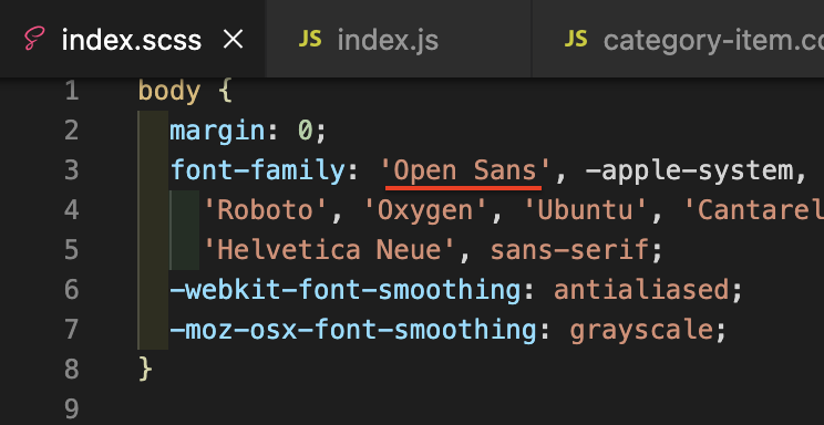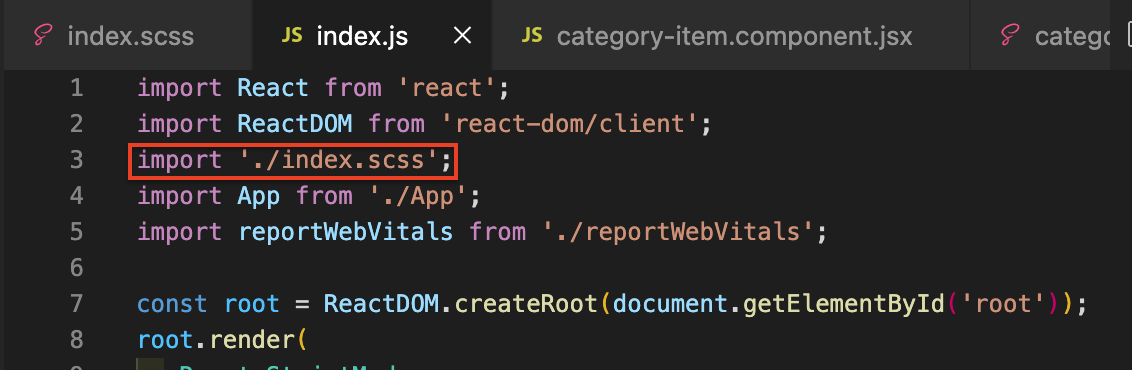 index.js에서도 './index.scss'로 바꿔준다.