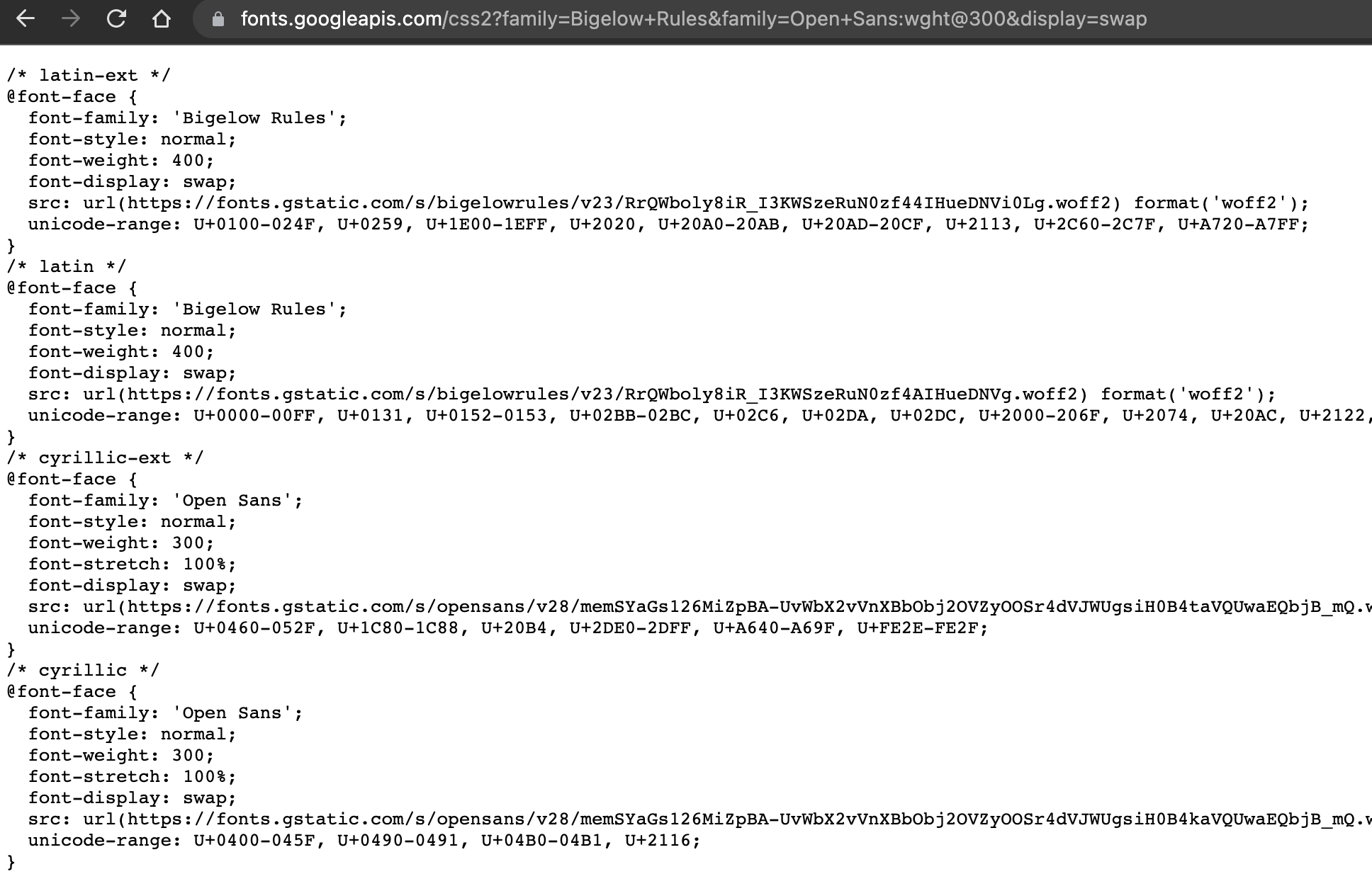 즉 font definition이 css 스타일로 나온다.
