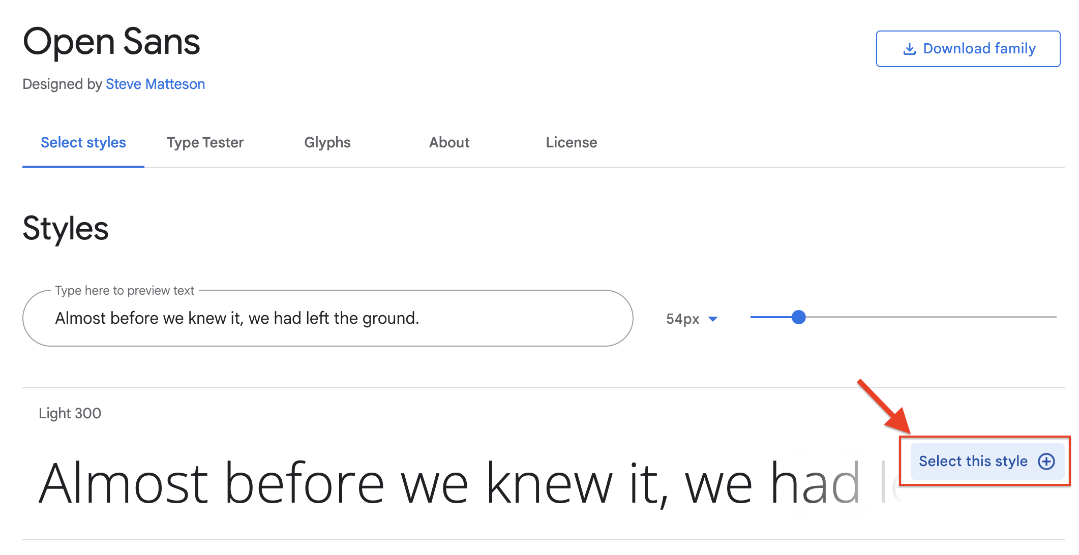 원하는 폰트에 Select this style을 클릭하면