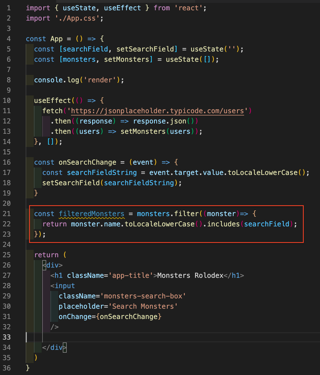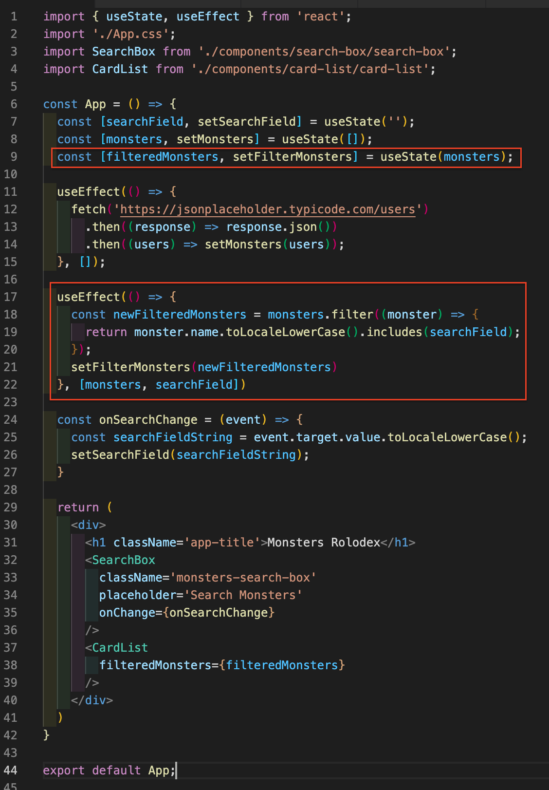filteredMonsters를 useEffect 안으로 넣어준다.