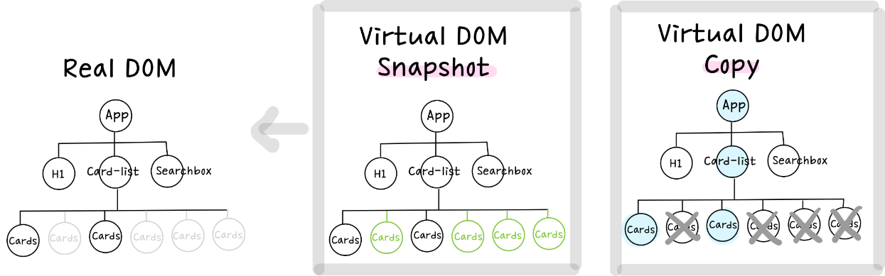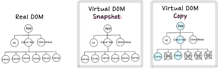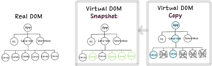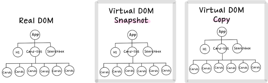 여러 복잡한 과정은 Virtaul DOM Copy에서 이뤄지고