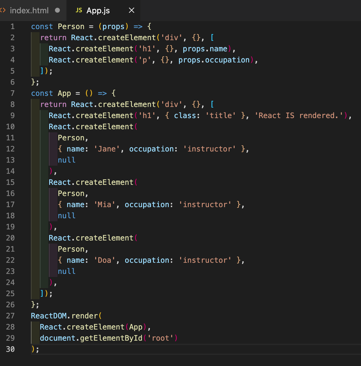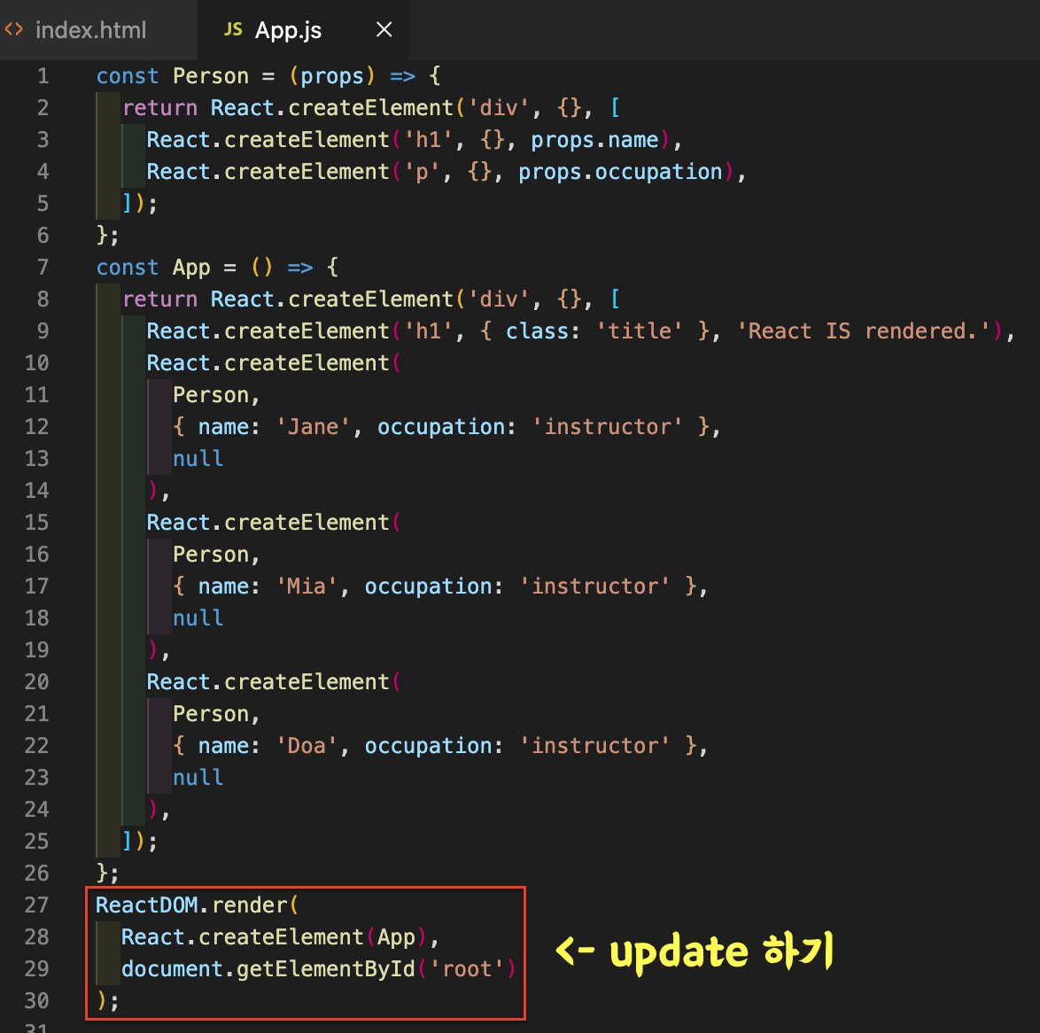 App.js 파일을 만들어 script 안에 있는 코드를 모두 옮긴다.