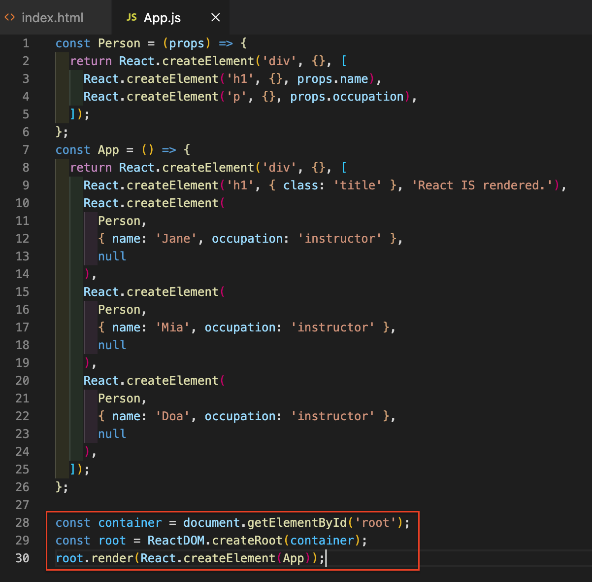 여기서 React와 ReactDOM 라이브러리를 불러온다.