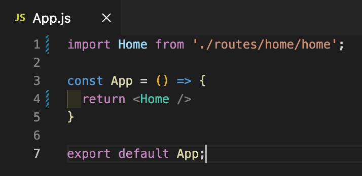 home 파일에 App.js 내용을 모두 복사해서 붙여넣기 한다.