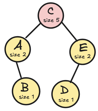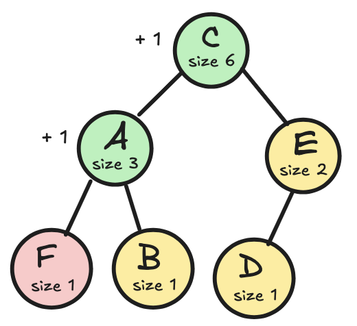 하지만 만약 각 서브트리의 크기를 O(1) 시간에 계산할 수 있다면, 전체 연산을 O(h) 시간에 해결할 수 있다