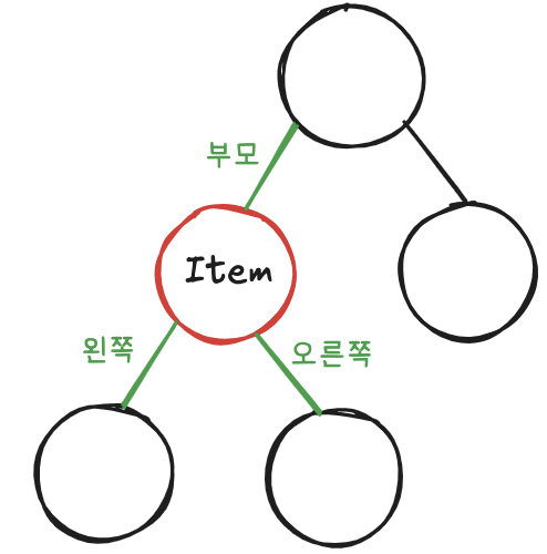 Node representation: node.{item, parent, left, right}