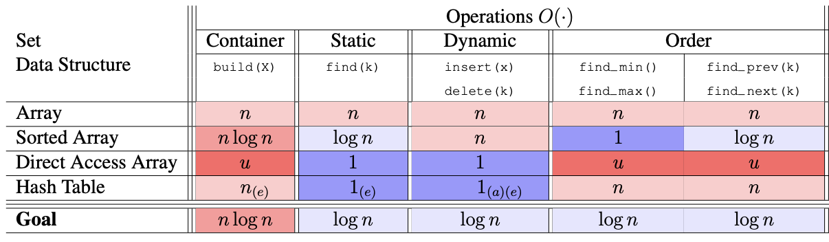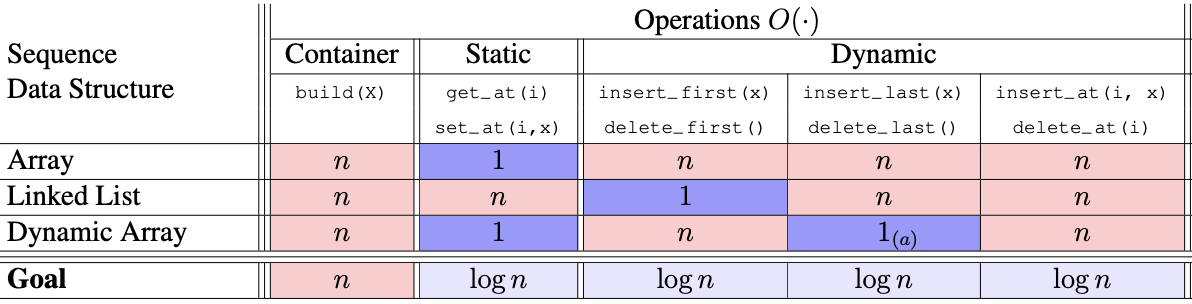 이전에 배운 자료구조들의 시간 복잡도를 표로 나타낸 것이다.