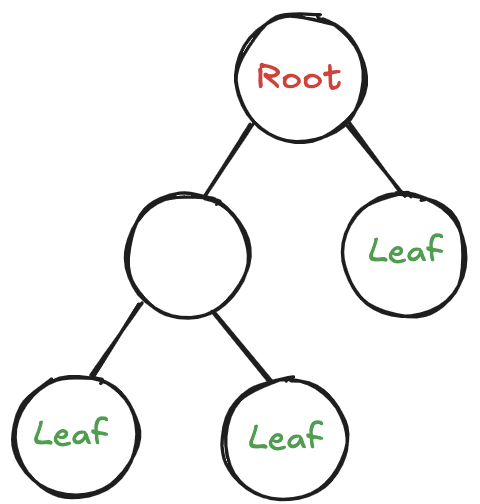 트리의 리프(leaf, 잎 노드)는 자식 노드가 없다. (예: <C>, <E>, <F>)